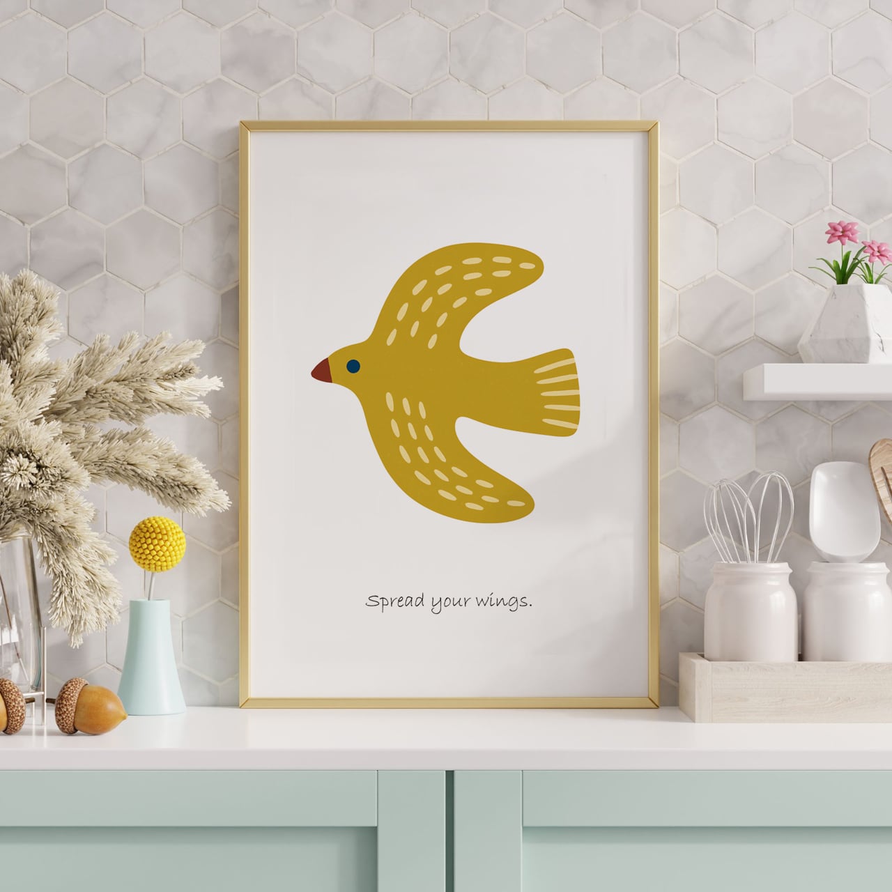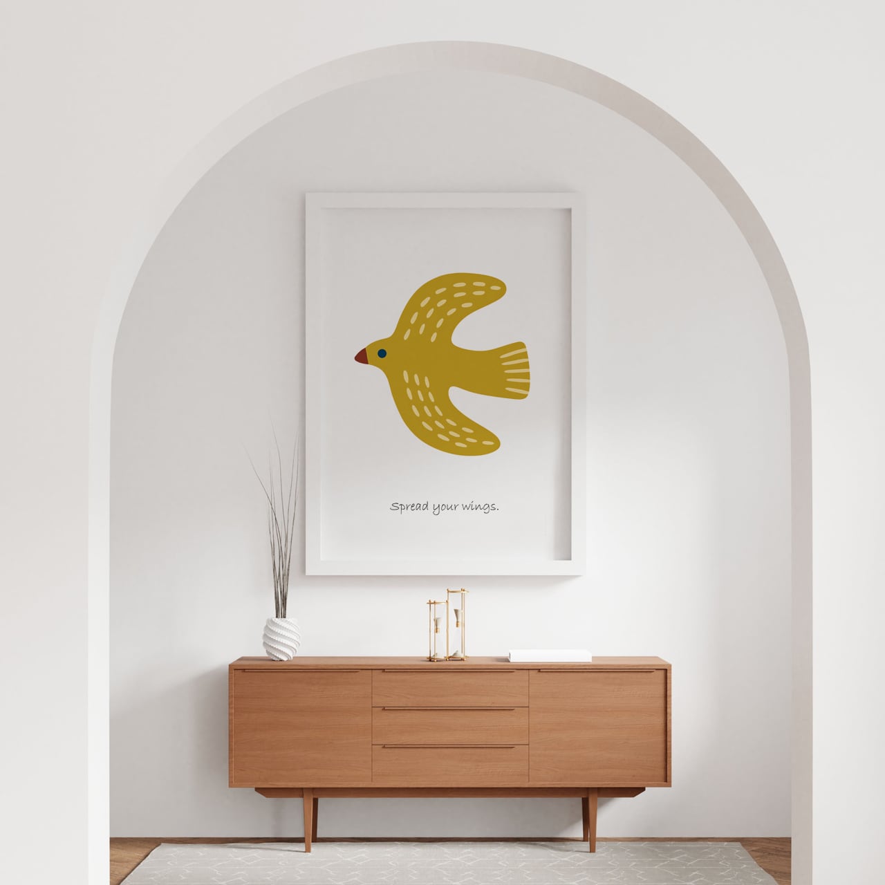 Spread your wings. ——「自分の能力を試す」「新しいことに挑戦する」といった意味の込められたこのポスターは、あなたらしく羽ばたく勇気をくれるポスターです。