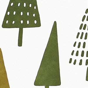 さまざまなツリーが並ぶデザインは、冬の森を思わせ、クリスマスシーズンのインテリアに華やぎを添えます。