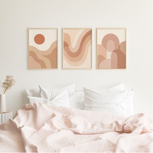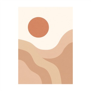 やさしいピンクベージュのグラデーションと円が印象的な抽象アートポスターです。太陽と丘陵を思わせるデザインは、空間に柔らかさと穏やかさを添えます。北欧モダンやナチュラルテイストのインテリアはもちろん、ボヘミアンやカフェ風のスタイルにも調和。リビングや寝室に飾れば、心地よい雰囲気を演出してくれる一枚です。