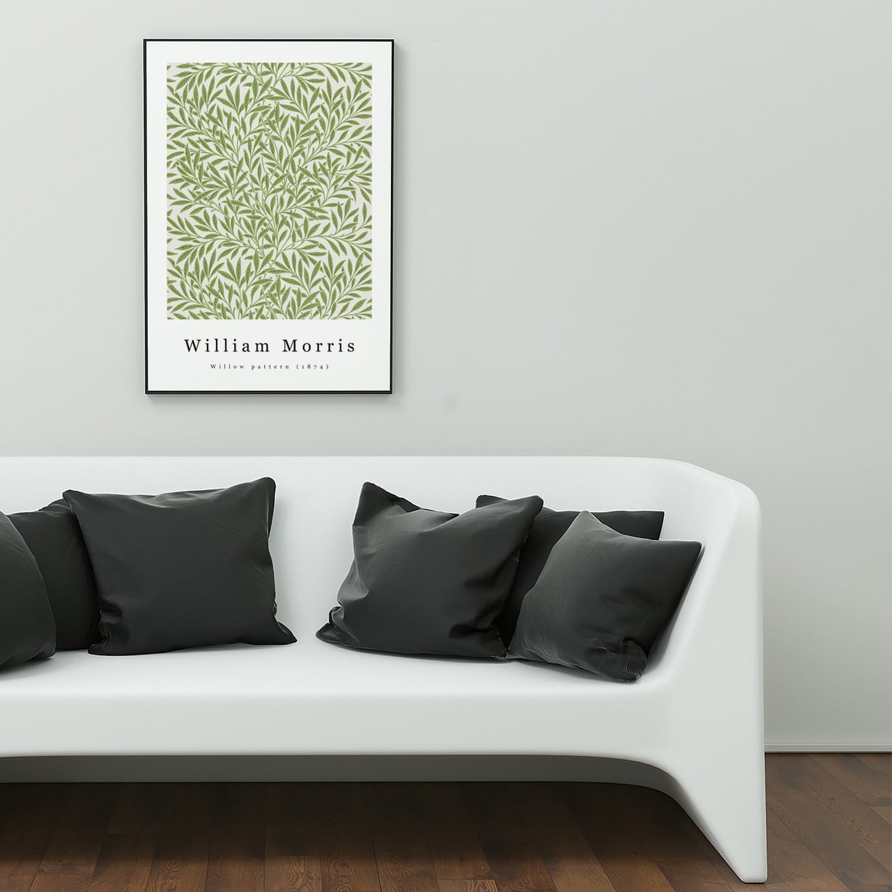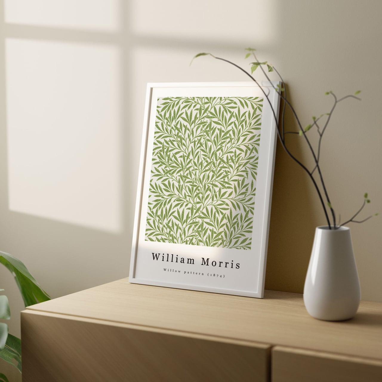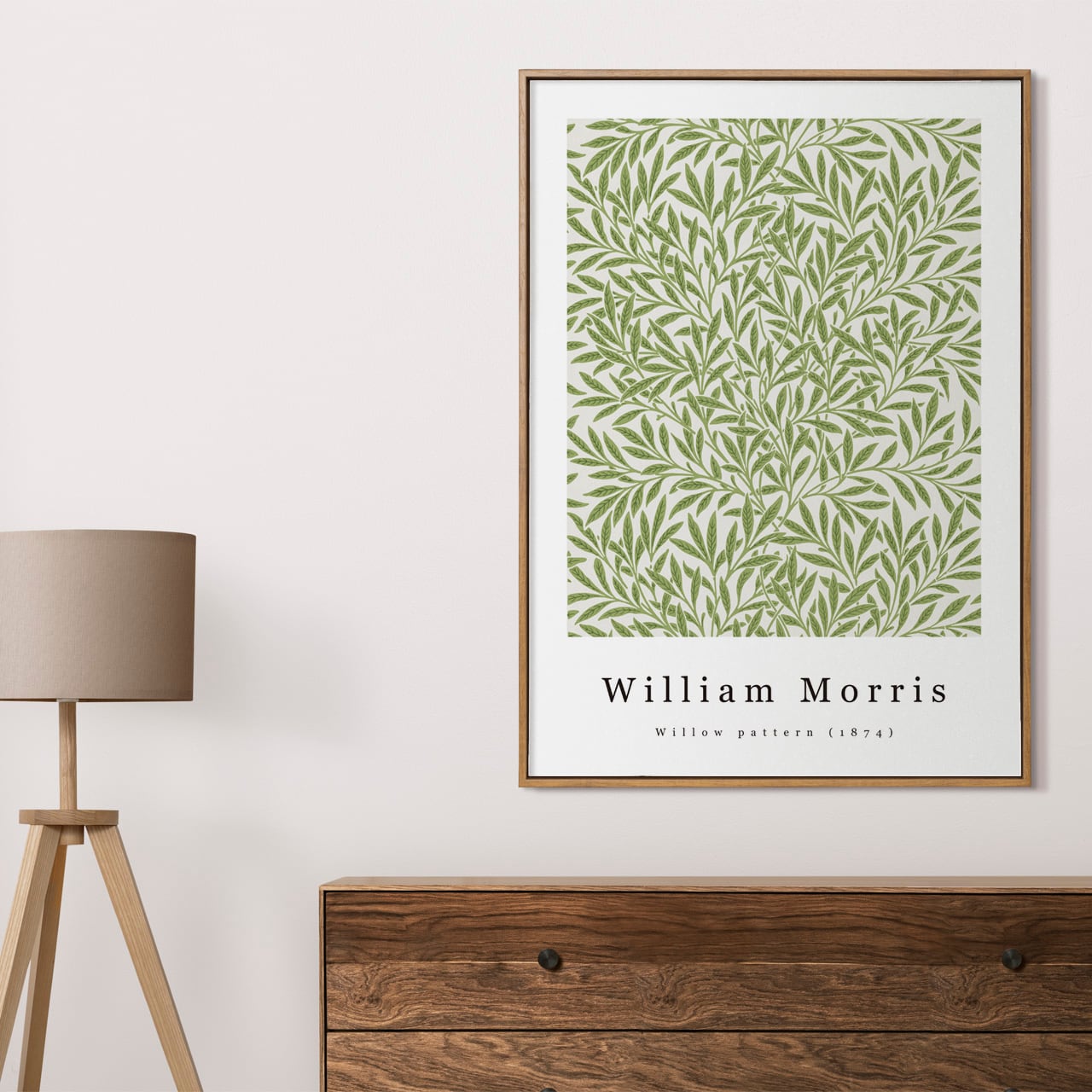 ウィリアム・モリスによる『Willow pattern』という作品のアートポスターです。柳の葉の美しいパターンが描かれています。